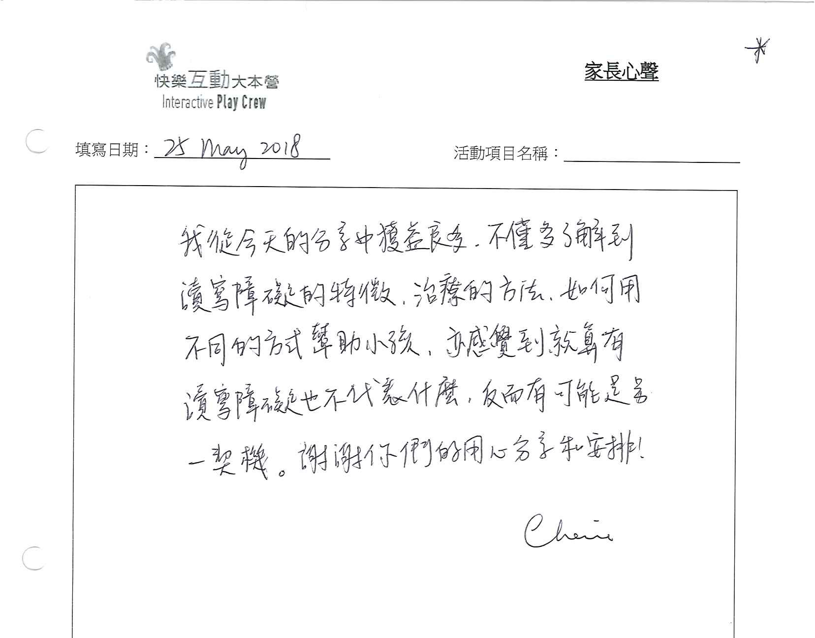 日期: 25/5 (星期五) 7:00-9:00 pm